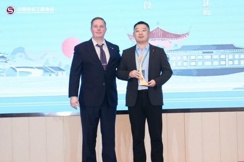 國際市政工程協(xié)會主席威樂·阿拉珀特頒發(fā)獎杯