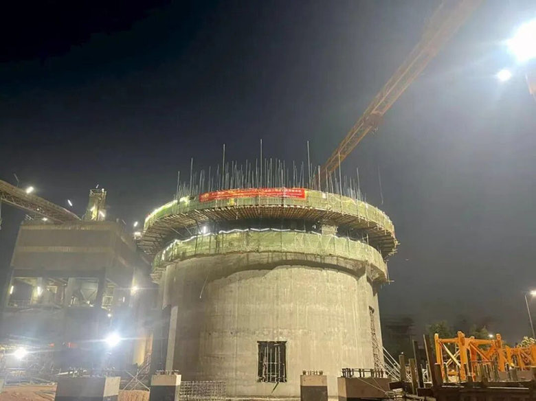 施工期間,項目部全體參建人員晝夜輪班、連續(xù)奮戰(zhàn),全程緊盯模板安裝、鋼筋綁扎、混凝土澆筑、液壓提升等每一個關(guān)鍵施工環(huán)節(jié),嚴(yán)控施工質(zhì)量與安全底線。海德國際副總經(jīng)理李世俊、分公司負(fù)責(zé)人廉照文、項目經(jīng)理李鵬翔親臨滑模作業(yè)一線,靠前指揮、全程督導(dǎo)。與一線施工人員并肩堅守,實時研判施工難點、協(xié)調(diào)解決技術(shù)瓶頸,精準(zhǔn)把控施工進度與安全管控,確?;W鳂I(yè)全程安全、高效、有序推進,彰顯了集團對海外項目建設(shè)的高度重視與責(zé)任擔(dān)當(dāng)。經(jīng)過為期一周的高強度、高精度施工,鋼筋混凝土筒倉首次滑模施工順利收官,成型質(zhì)量、施工精度均達到設(shè)計標(biāo)準(zhǔn),贏得了甲方及監(jiān)理單位的高度認(rèn)可與一致好評,為集團在海外市場樹立了良好的專業(yè)形象。